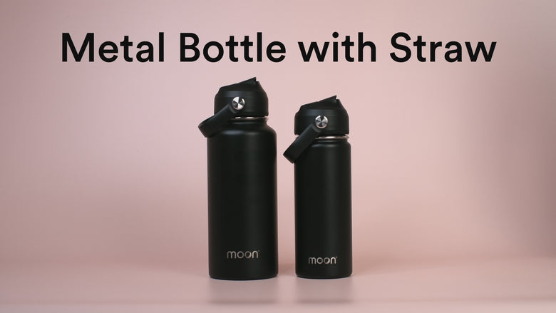 Every Moon Drink Bottle is double walled, vacuum insulated and made from 18/8 Stainless Steel Metal. Guaranteed to keep your drink cold for 24 hours and hot for 12. The internal Drink Bottle Straw goes all the way to the bottom of the bottle, so you can keep it upright for the entirety of your beverage. The carry handle allows for easy transportation and can be pushed down when not in use.